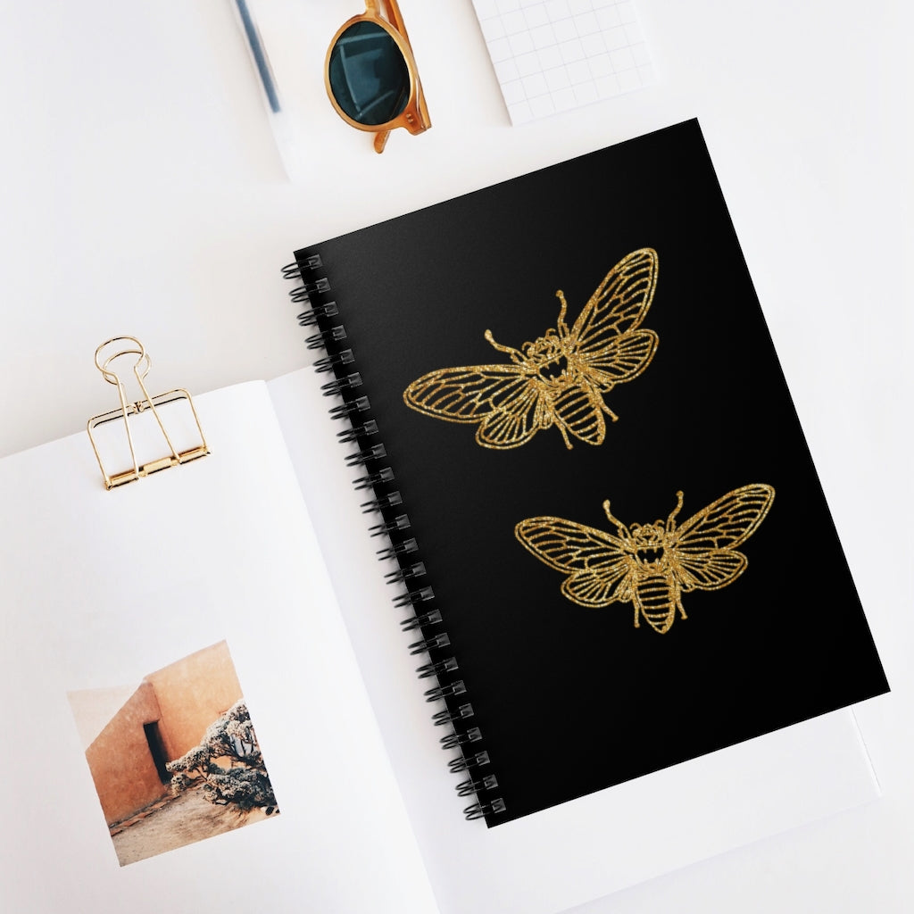 Gold Glitter Bee Spiral Notebook - Ruled Line