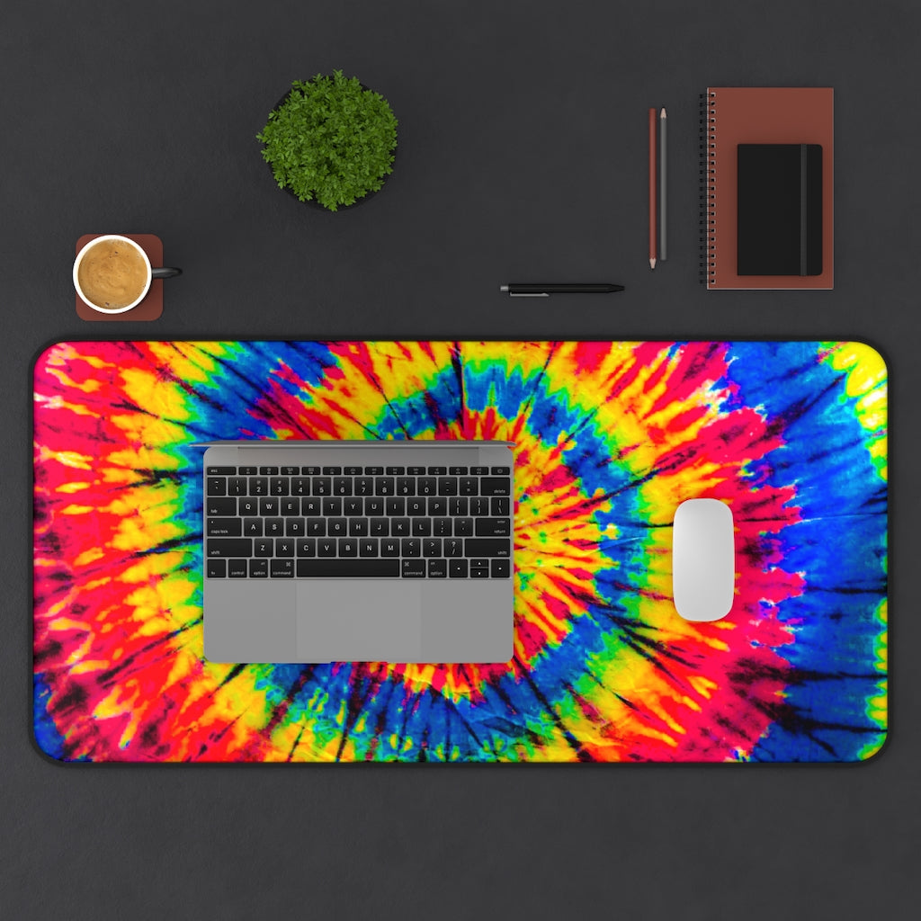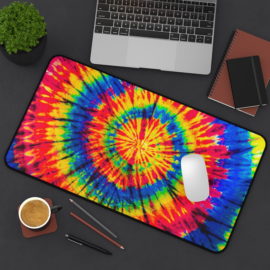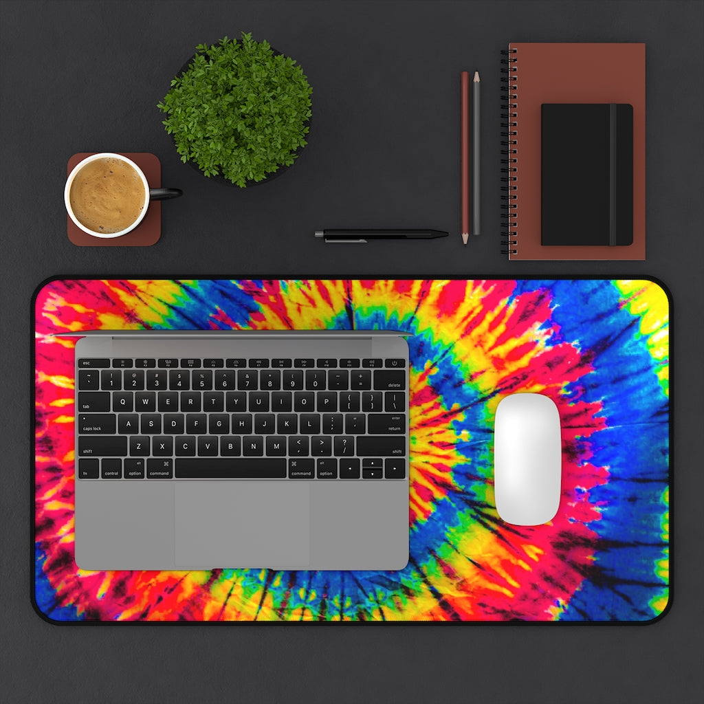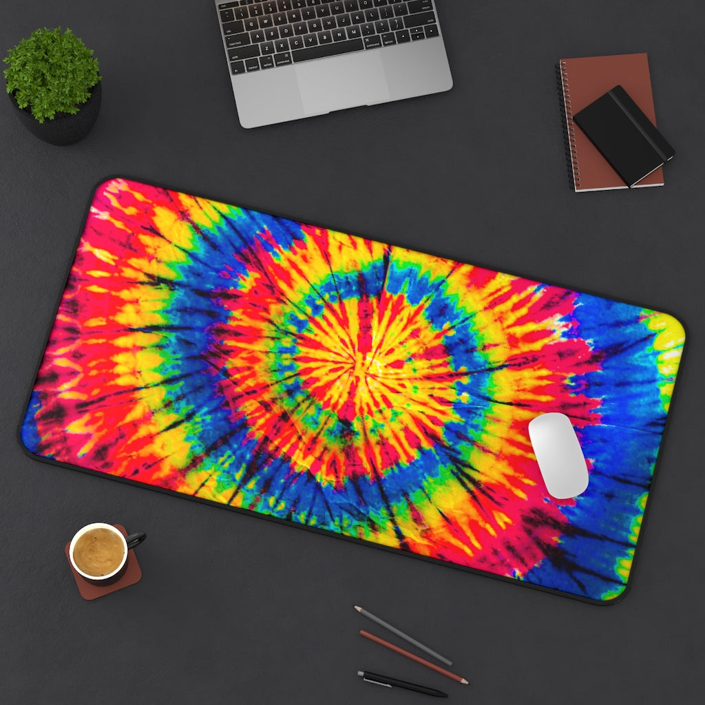 Glow up your workspace vibes with this vibrant rainbow tiedye desk mat mousepad — perfect for that extra personal touch at work or in your home office. Made of 4mm thick neoprene material, it has an anti-slip backing and a hemmed edge for durability and stability. Available in three different sizes: 12” × 22”, and 31.3" × 15.7" in.