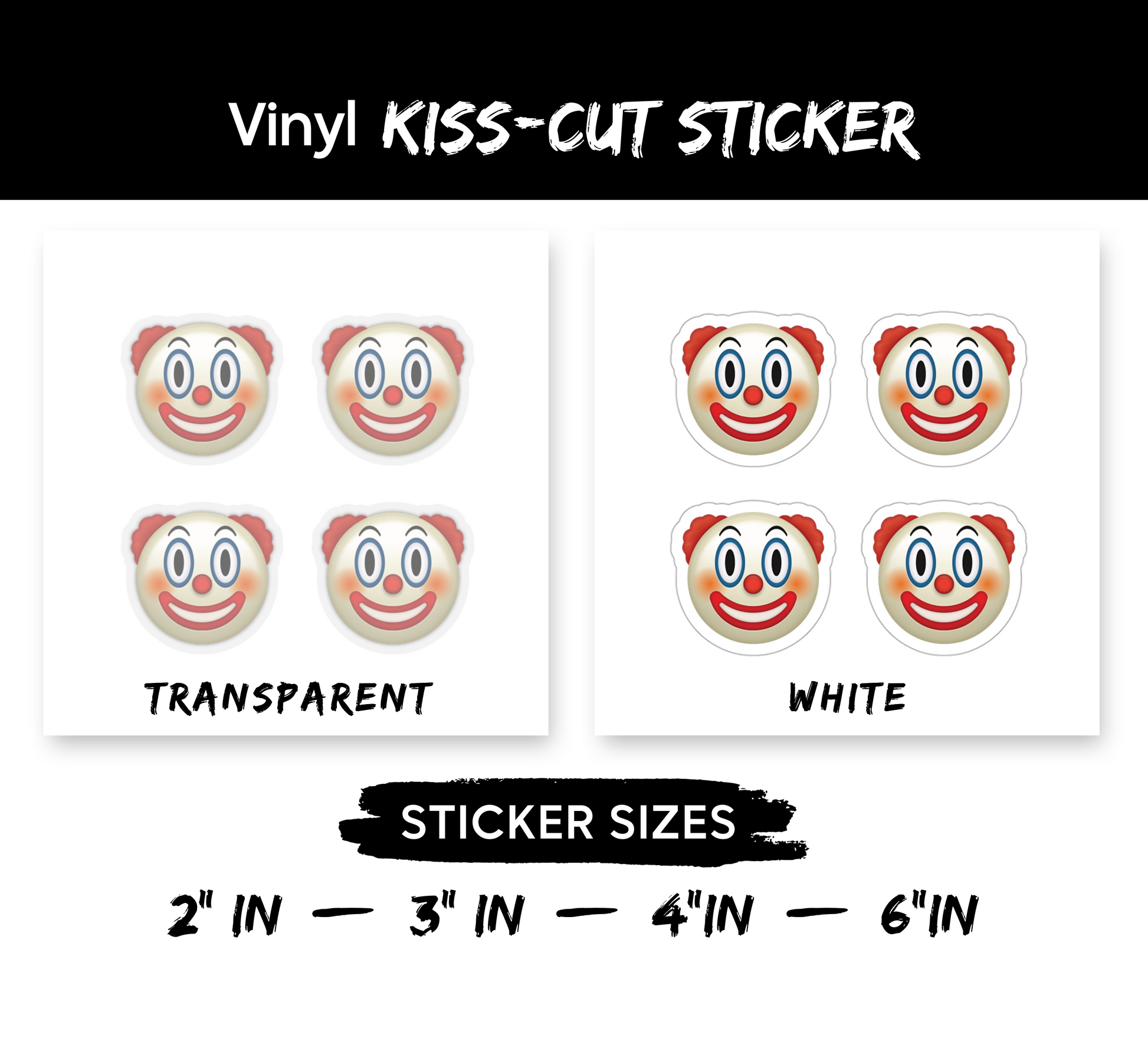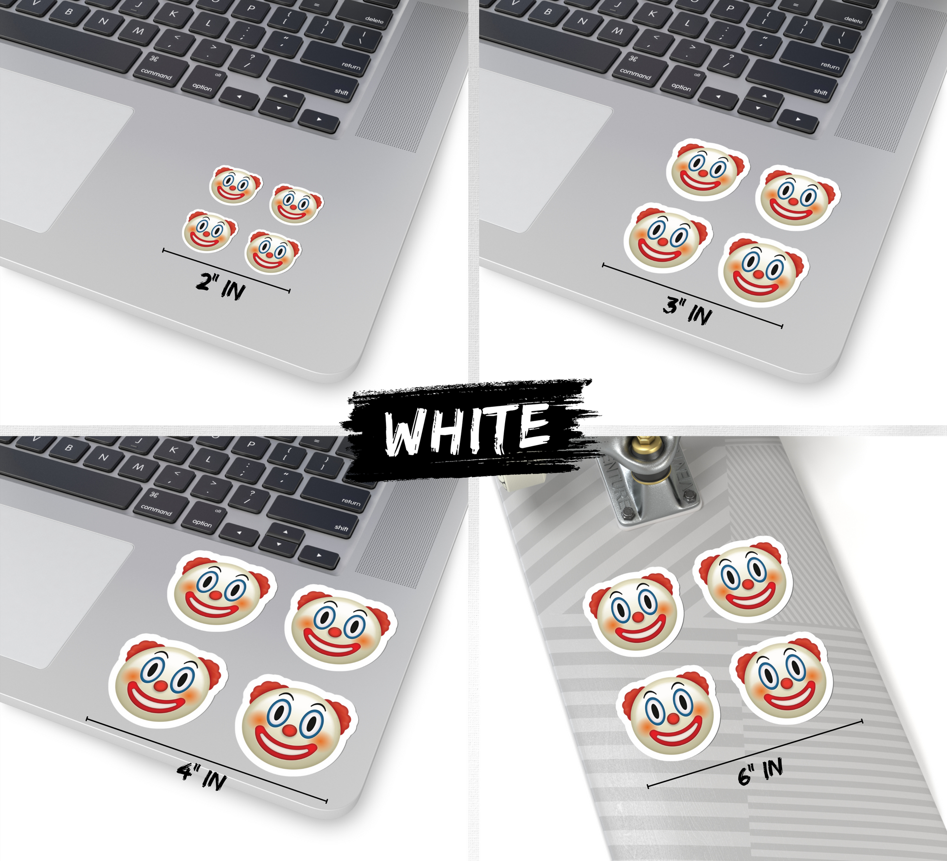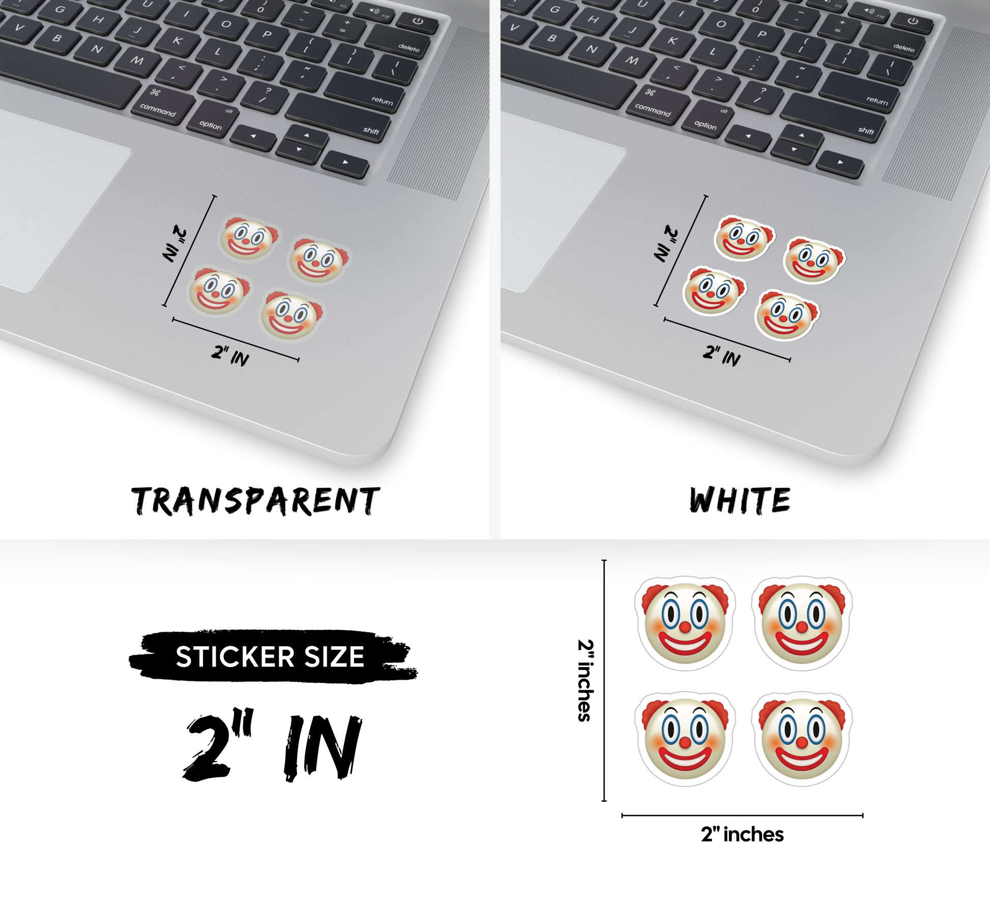Enhance your personal items with this Mini Clown Emoji Sticker Set 🤡 — this mini sticker sheet provides the ultimate flexibility for implementing your creative vision on everyday items such as phones, laptops, notebooks, water bottles & more. The kiss-cut sticker method precisely cuts the sticker into the design shape, leaving the back intact so that it can be smoothly peeled off the page. Choose from four different sizes — 2in, 3in, 4in, 6in, each sticker sheet includes four mini stickers.