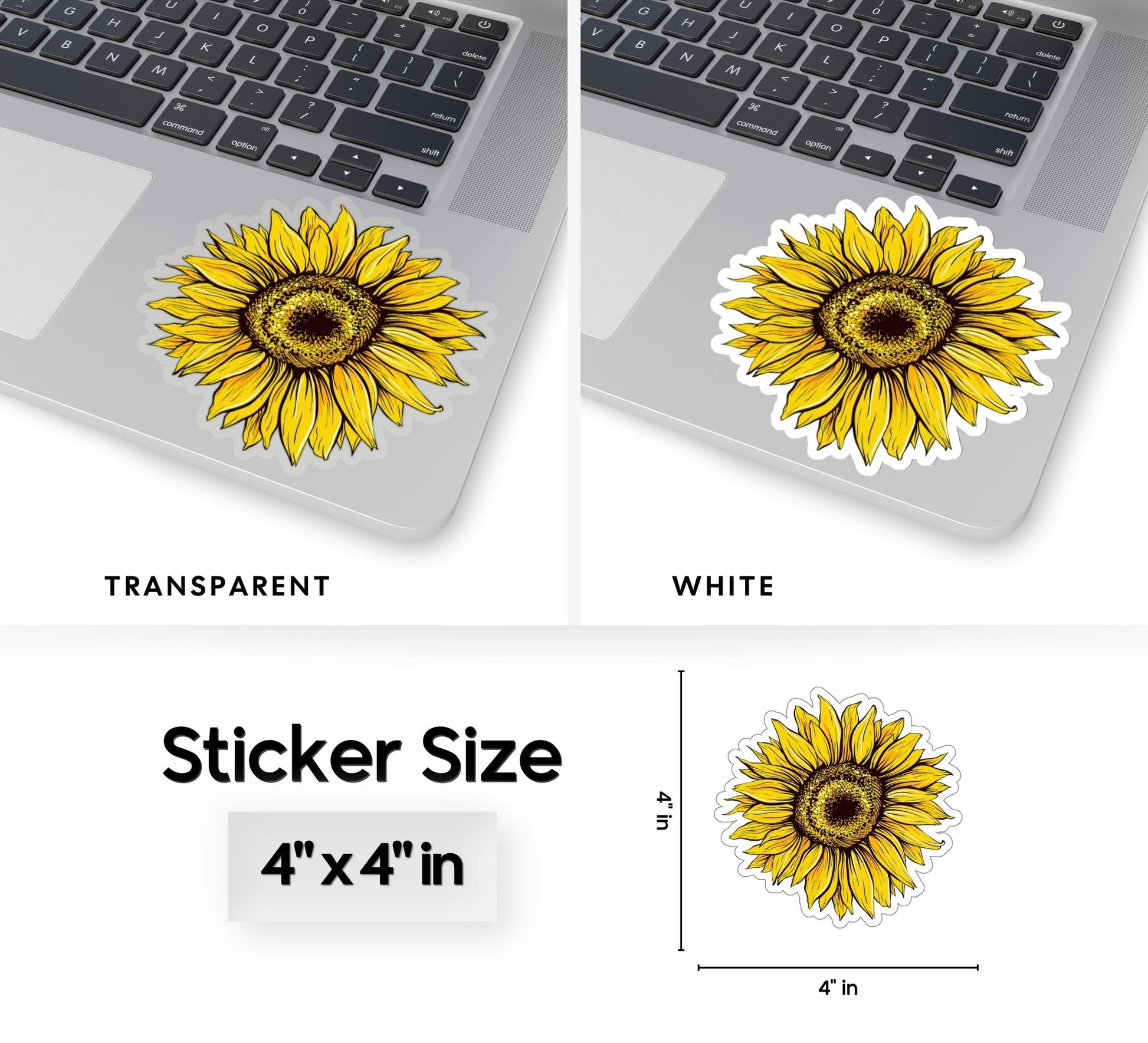 Enhance your personal items with this gorgeous hand drawn Sunflower Sticker 🌻 — This sticker is a premium vinyl Kiss Cut Sticker that provides ultimate flexibility for implementing your creative vision on everyday items such as phones, laptops, notebooks, water bottles & more. The kiss-cut sticker method precisely cuts the sticker into the design shape, leaving the back intact so that it can be smoothly peeled off the page. Choose from four different sizes — 2in, 3in, 4in, 6in.